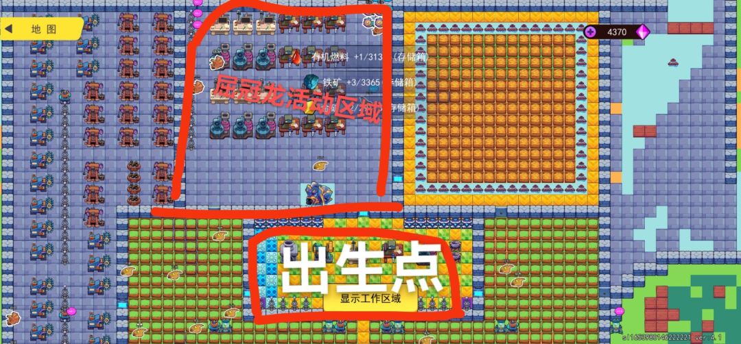 在抓满你需要的采集龙之前,出生点(你的回城点)上方留一大块儿不要通铺。如图红色字体区域。