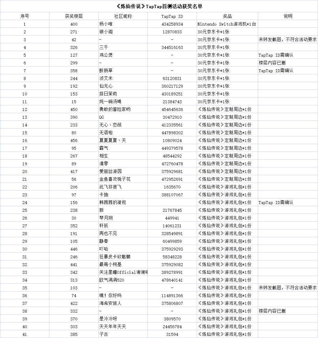 截至2022年7月18日10时,共有450多位仙友踊跃参与《炼仙传说》TapTap首测活动,共有41位仙友获得本次活动的奖品,小白激动得速速赶来颁奖现场公布喜讯!