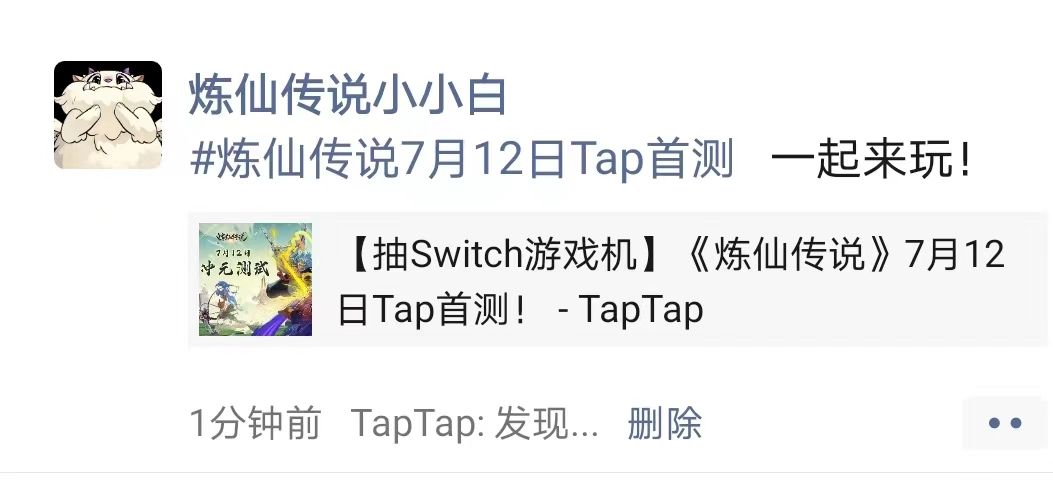 2.带上#炼仙传说7月12日Tap首测#,将本贴分享在TapTap个人主页、微信朋友圈或者新浪微博,并将截图发到评论区。