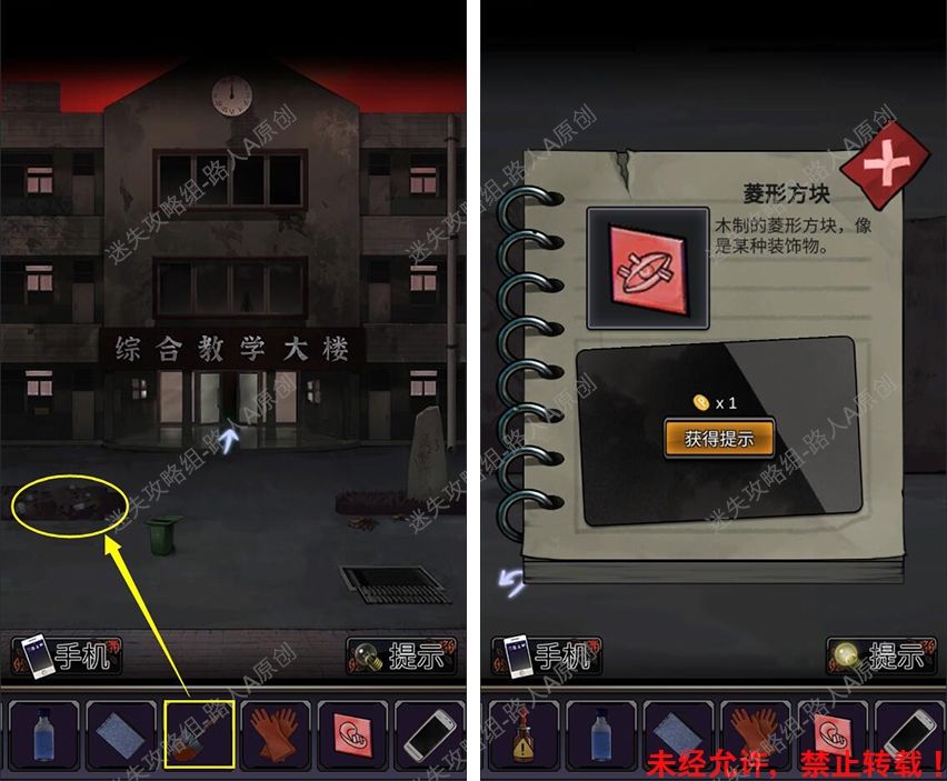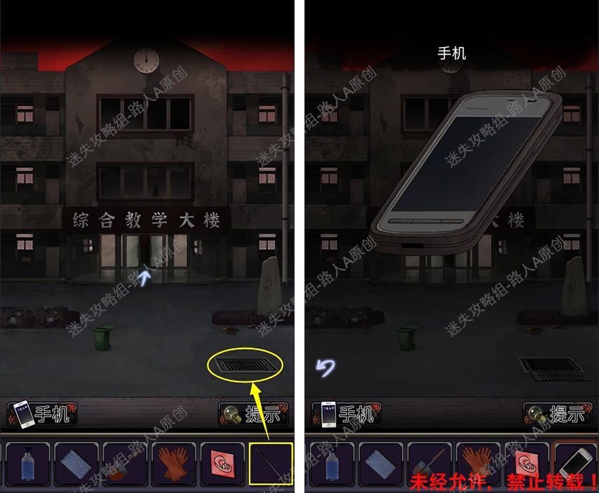 36.前往教学楼外,用【撬棍】撬开井盖,获得【手机】。36.1