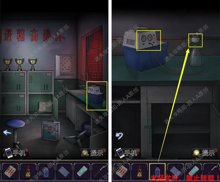14.前往走廊左侧,拾取饮水机上的【试剂瓶】。14.1