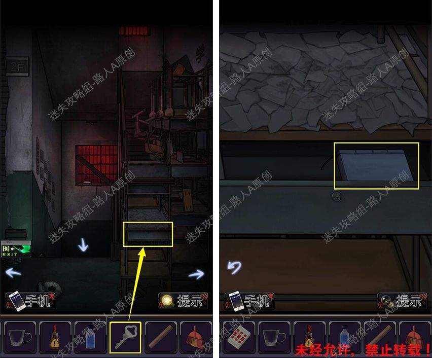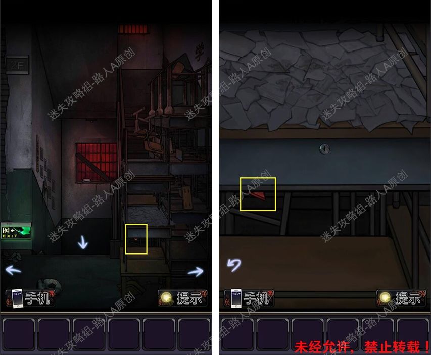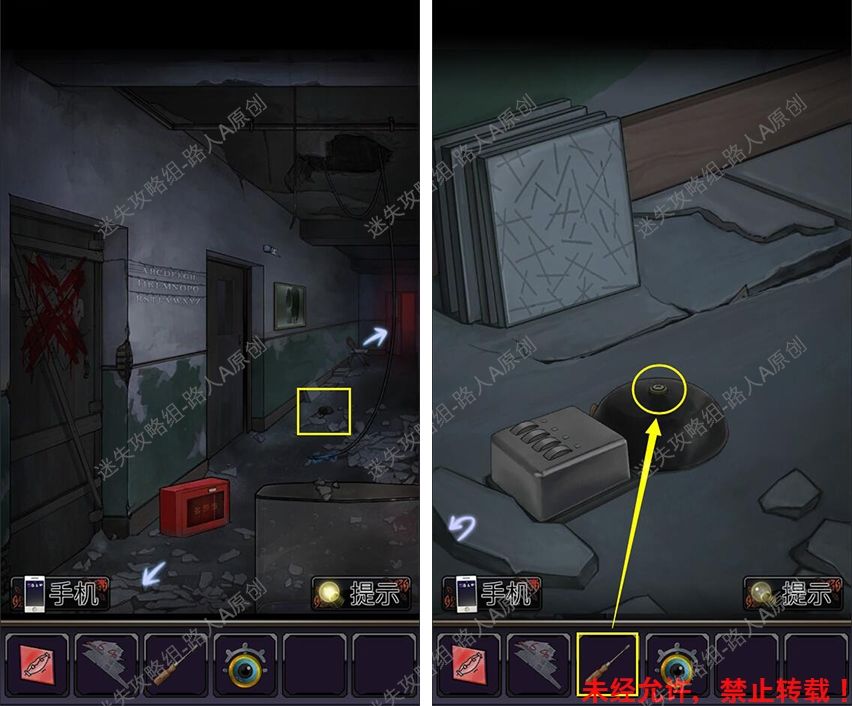11.查看墙上的安全出口指示牌,完成小游戏,获得【螺丝刀】。11.1