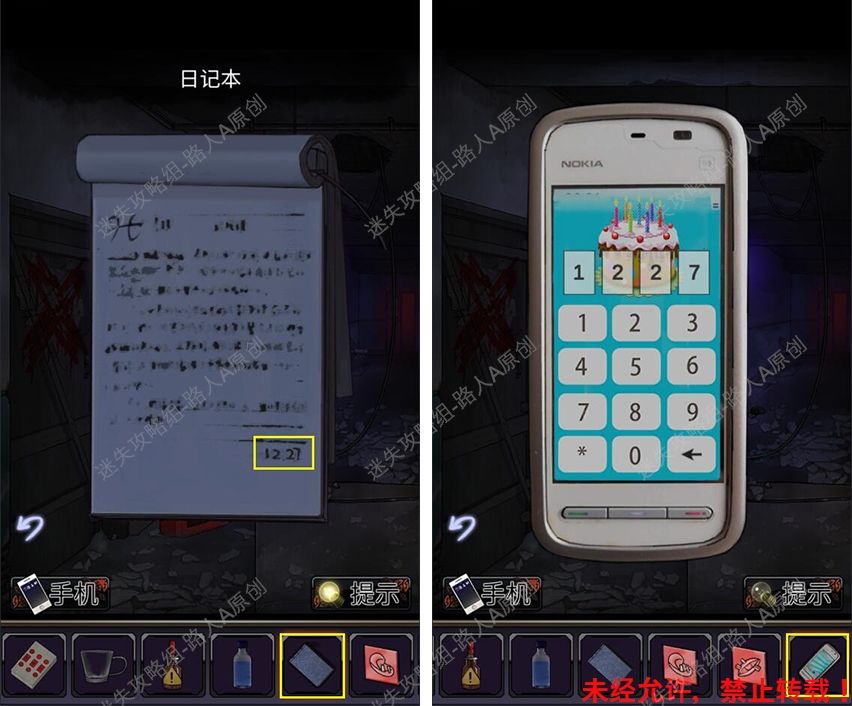 39.查看物品栏的【日记本】,得到密码【1227】,输入密码解锁手机。39.1