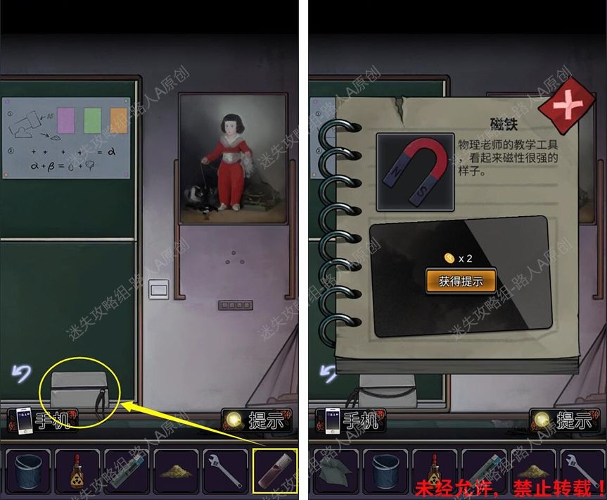 60.用【唇油】打开黑板下的工具包,获得【磁铁】。60.1