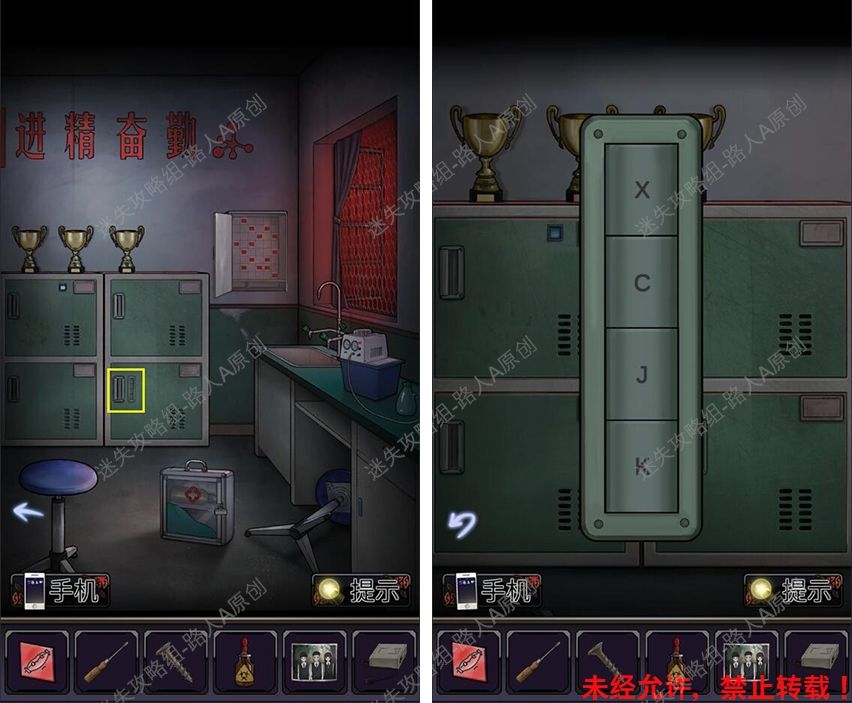 35.前往理化教室,输入密码【XCJK】打开储物柜,获得【撬棍】。35.1