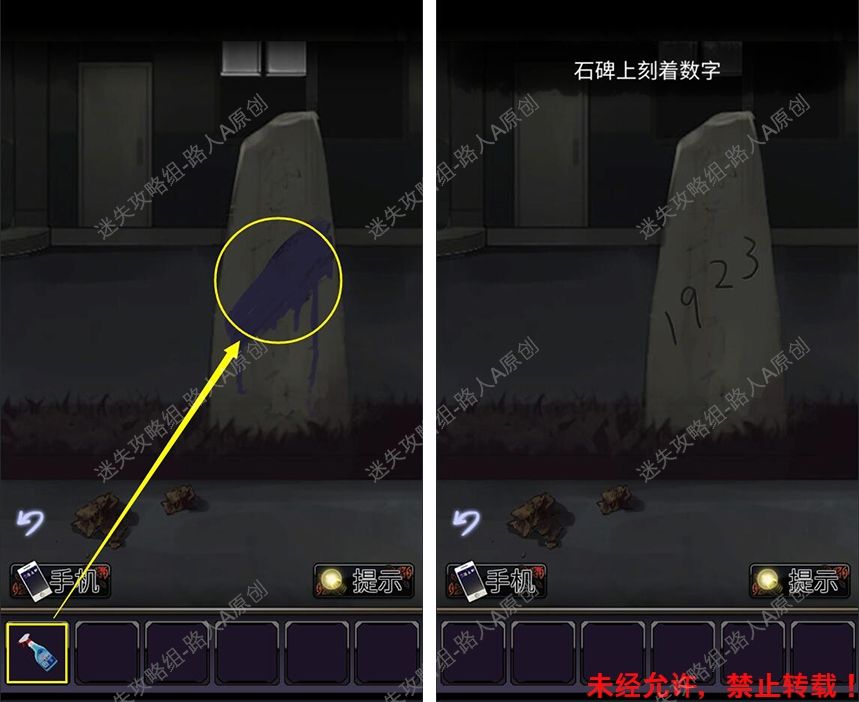 6.用【清洁剂】清除石碑的油漆,得到密码【1923】。6.1