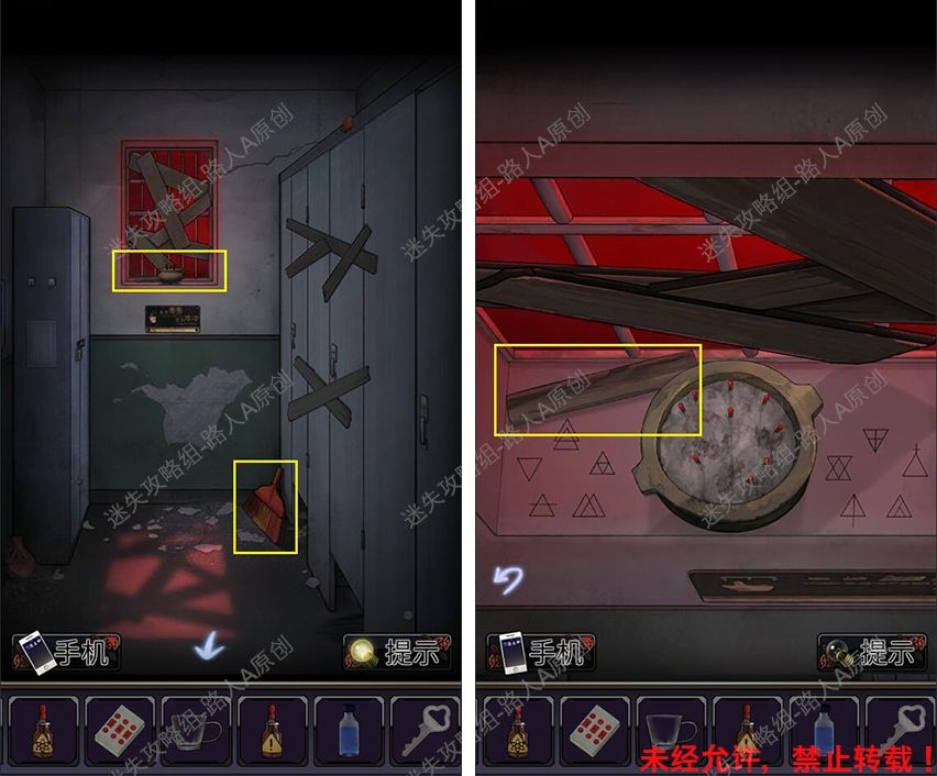 24.进入厕所,拾取地上的【扫把】,拾取窗台上的【木棍】。24.1