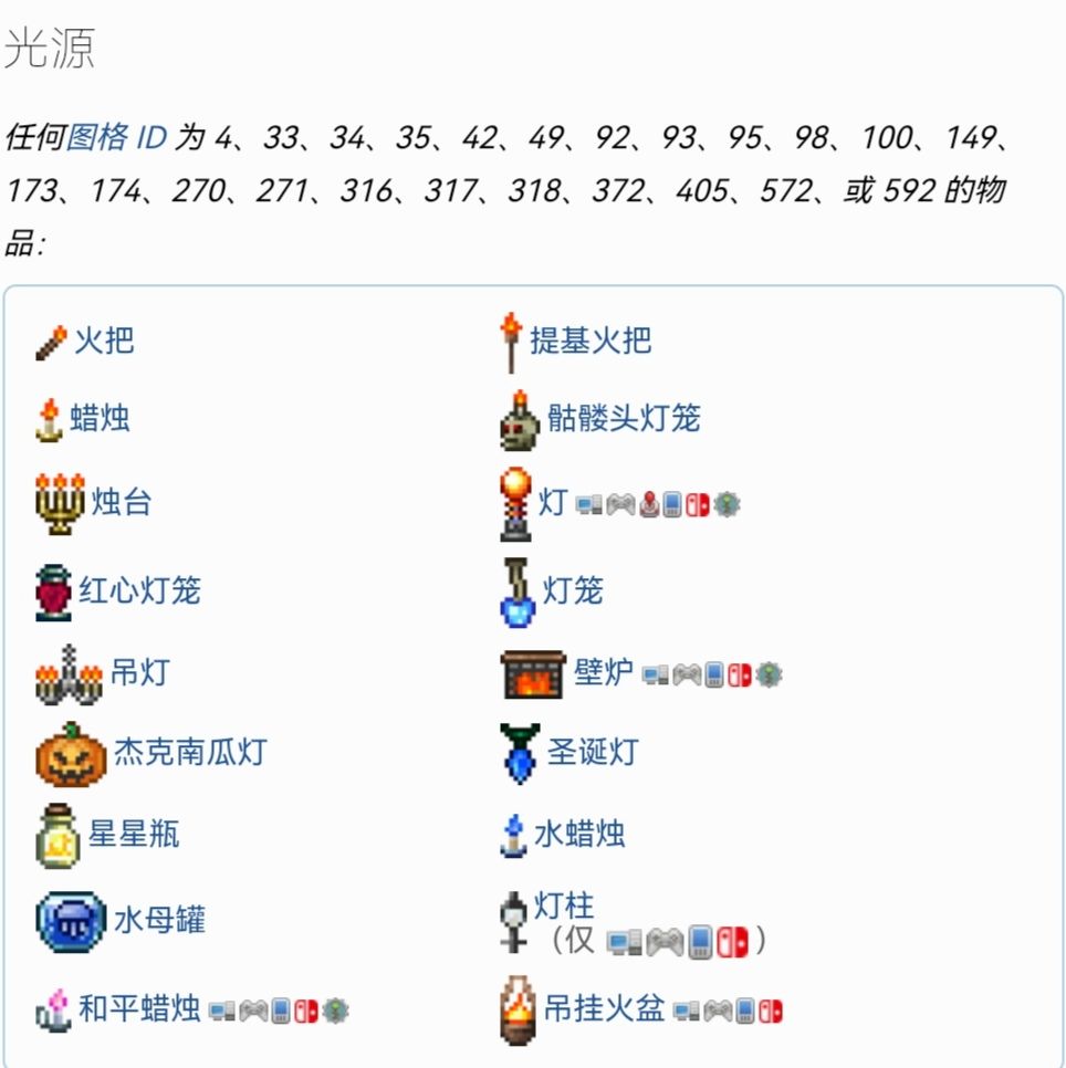 注:你可以把物块换成平台,意思就是你可以建造一个全是由平台(下面必须有一个实体物块)组成的房间,很省材料的哦。