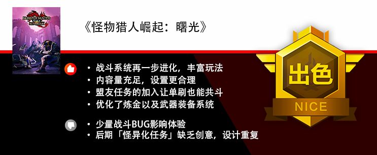 对于众多发展了多年的系列老游戏 IP 来说,「如何平衡新老玩家的游戏体验」一直都是永恒不变的话题。在经历了《怪物猎人:崛起》降低门槛、内容不足以支持老玩家持续玩下去的困境之后,「曙光」吸取了各方面的教训积极改进游戏体验。总体而言,本次的超大型 DLC 是一次值得肯定的进化,无论你是短期体验还是长线游玩都一定会对这些内容感到满意。