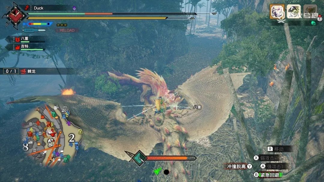 切换不同替换技的同时再按下 B 键并轻推摇杆还能触发更灵活的小段位移技能「冲锋」,无论玩家用的是什么样的武器都能借助这个机会调整站位甚至是躲避怪物的攻击。多加练习,熟练「切换」-「冲锋」之后就能给猎人争取到更多输出空隙。