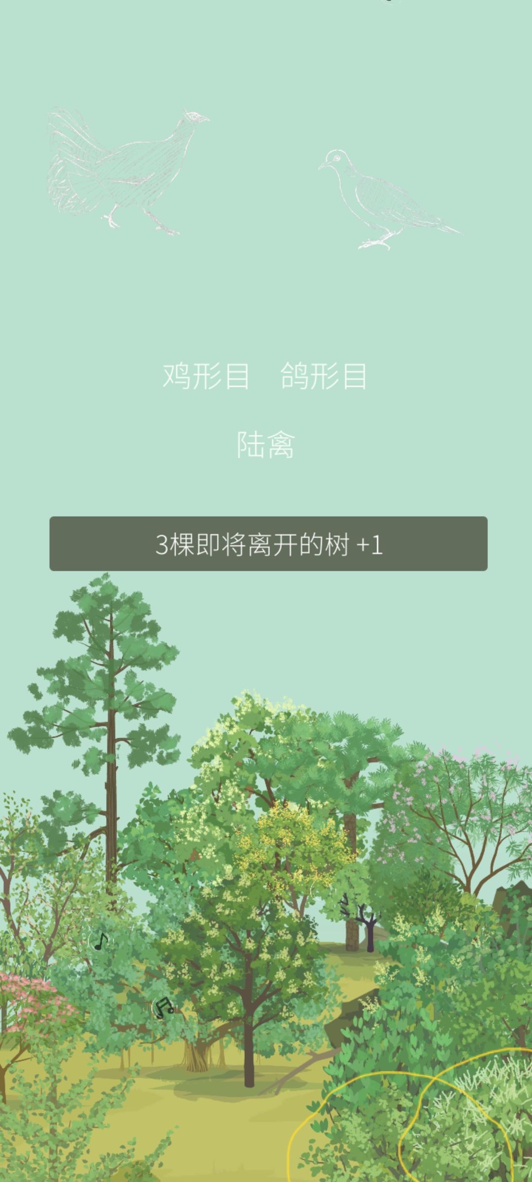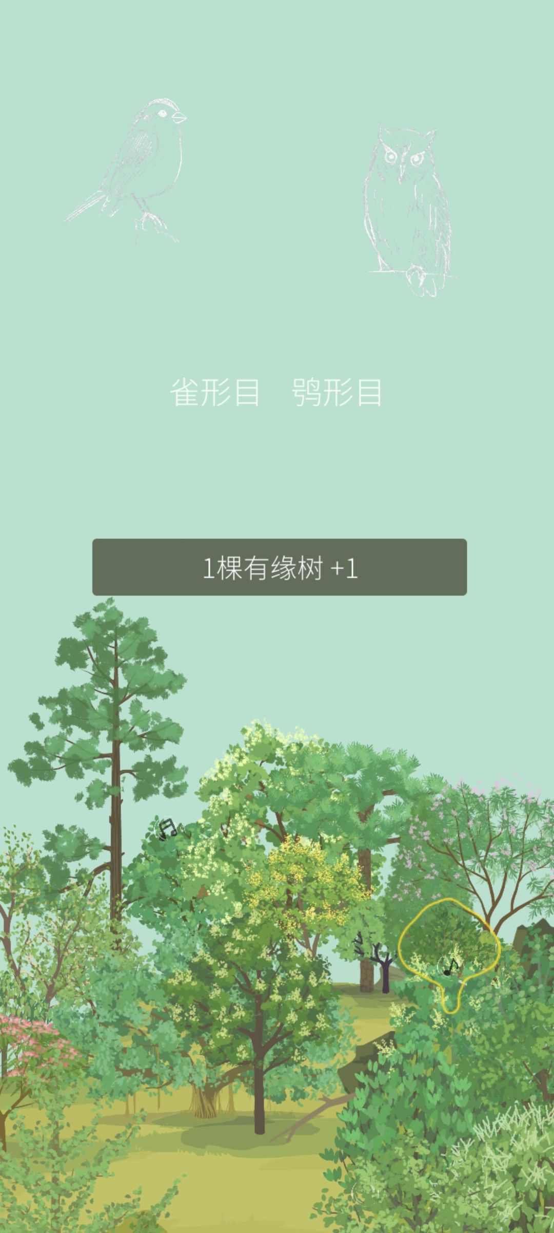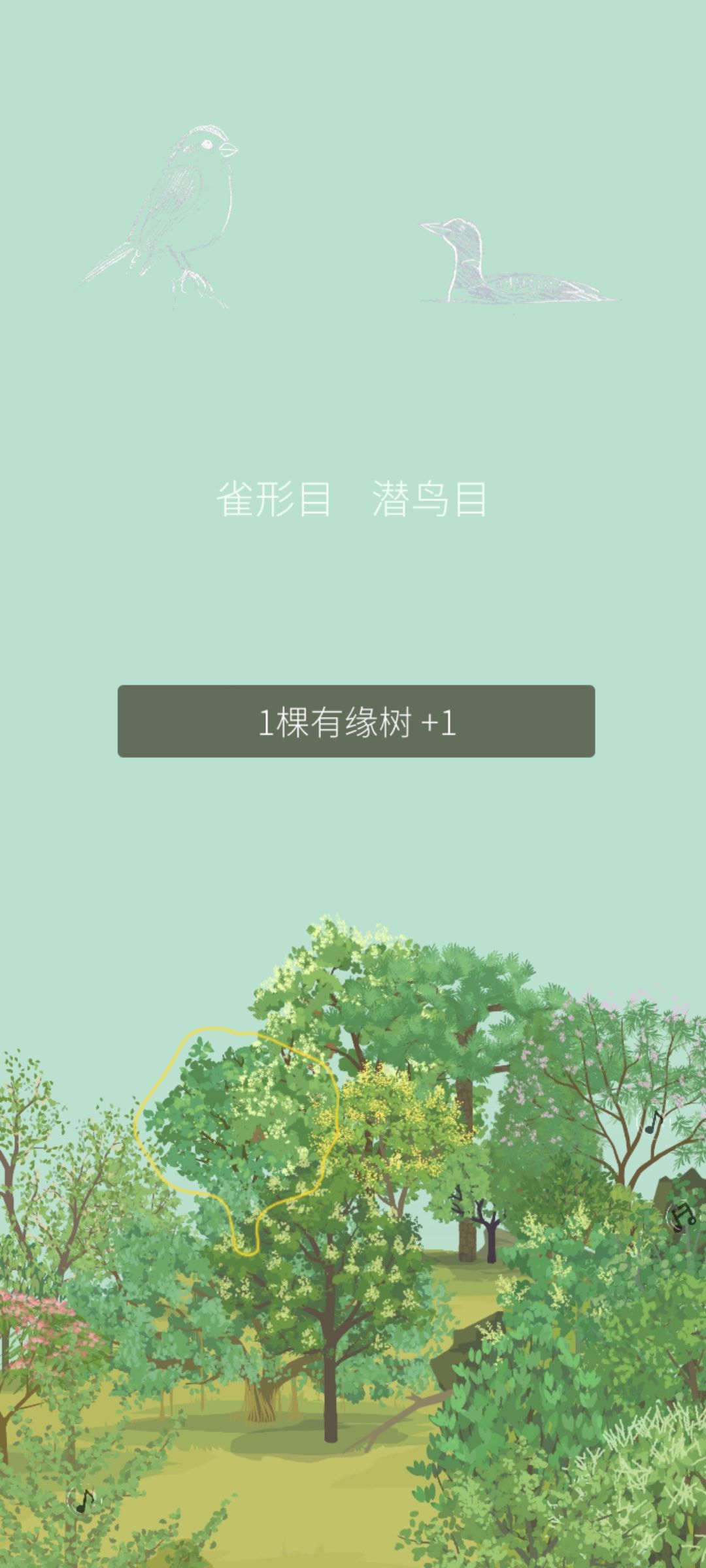 每天完成老农的随机任务后,获得盲盒奖励的同时山头上空也会出现两只小鸟的线描,下标目类。