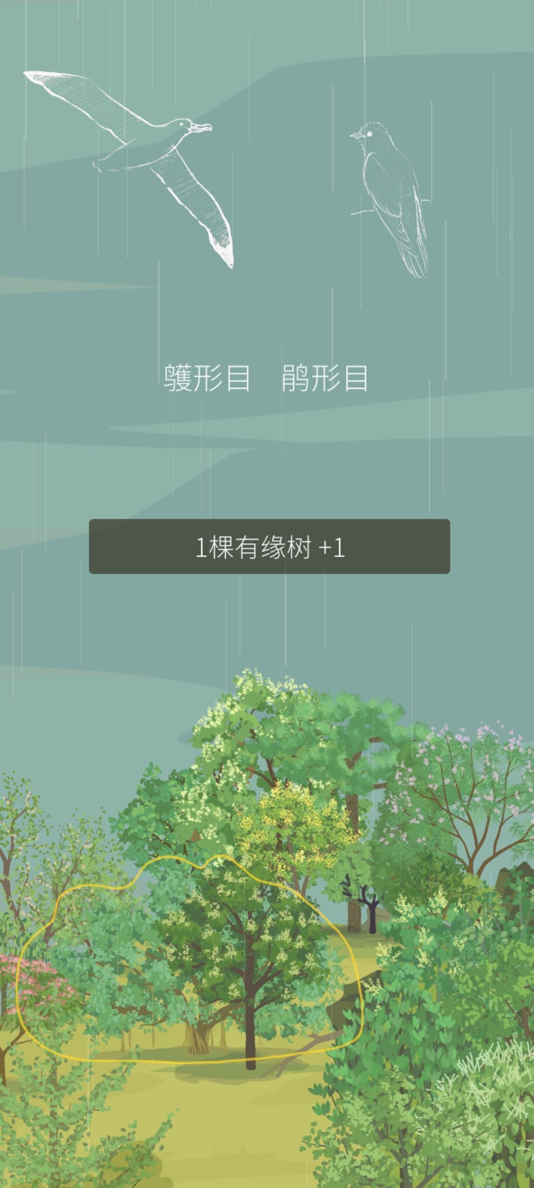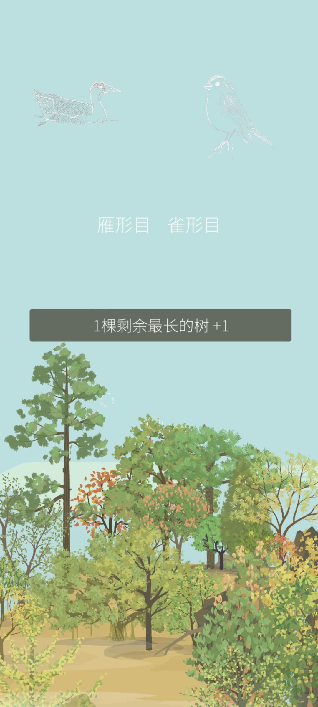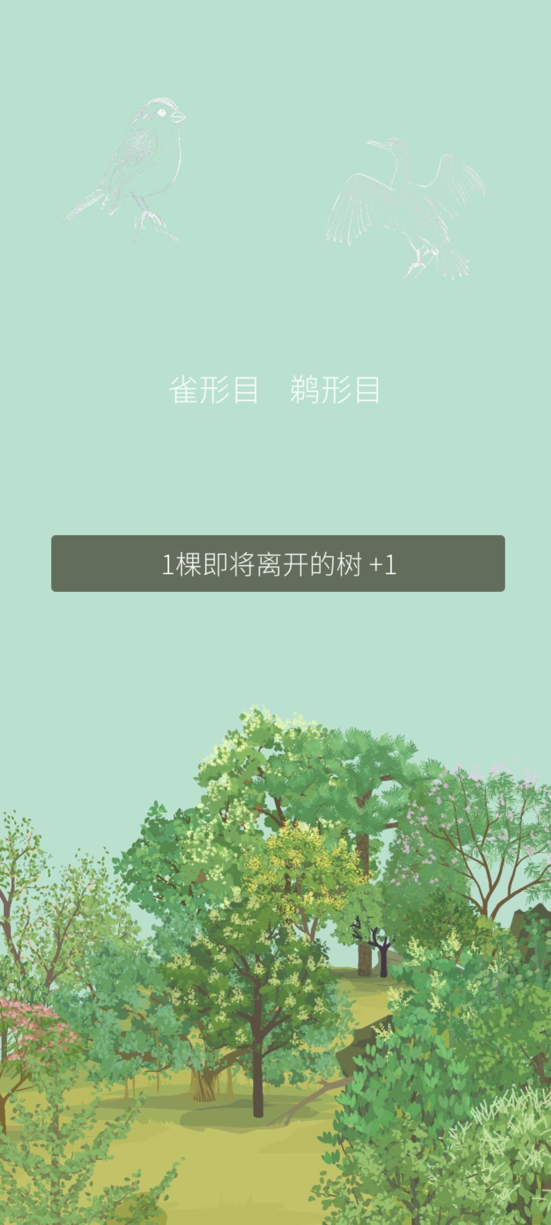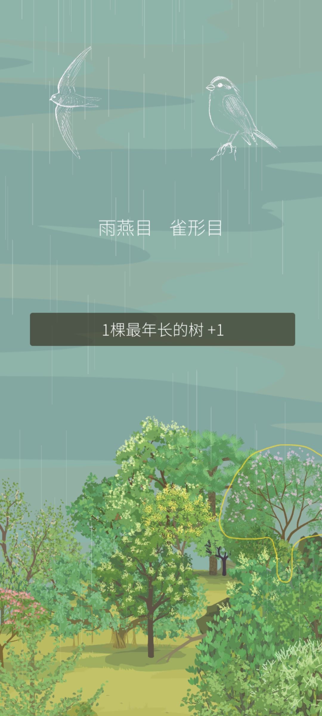 每天完成老农的随机任务后,获得盲盒奖励的同时山头上空也会出现两只小鸟的线描,下标目类。