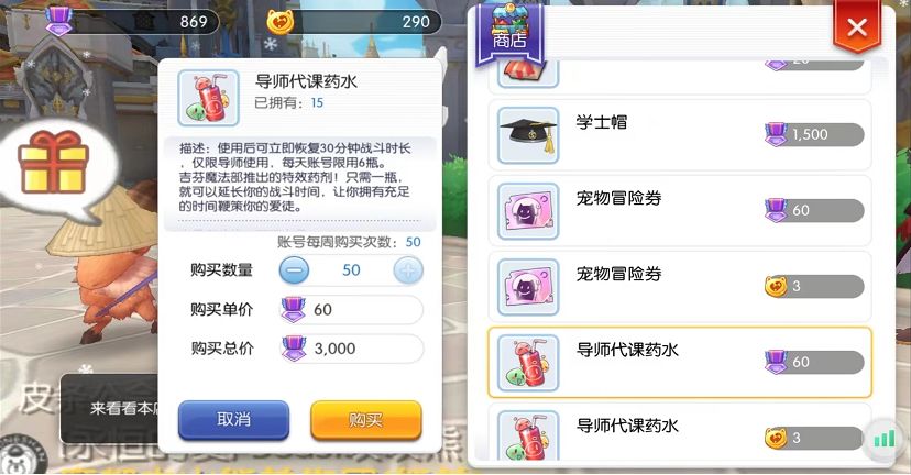 9.师徒证每周可以购买50支药水,每天只能喝6瓶,一周42瓶,所以可以考虑买42次,然后有剩的可以购买附魔币,主号+2个背号,900师徒证x3,一共每周可以获得2700个师徒证,自己合理分配。