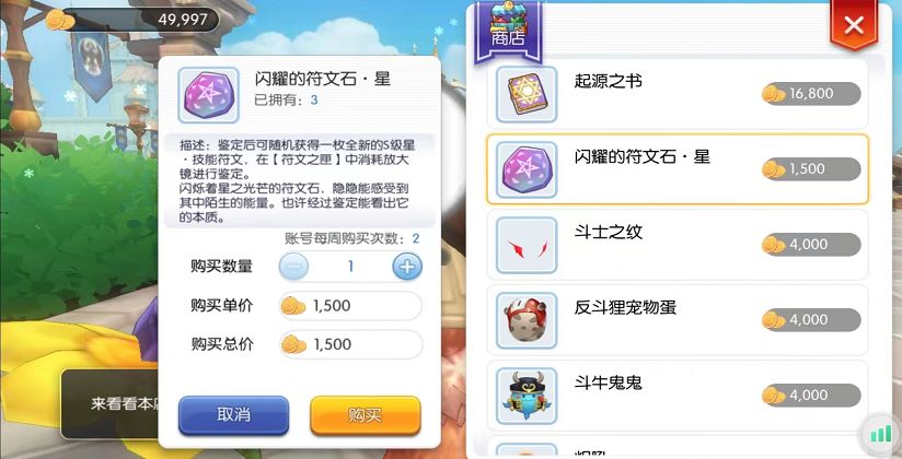 3.首都符文商店购买符文,按需购买。B级符文x10,A级符文x3,小符文袋是叠加的,意思一直加价上去那种,自己看着自己的钱包购买,有多种兑换方式,都是递增模式,每周更新重置一次。