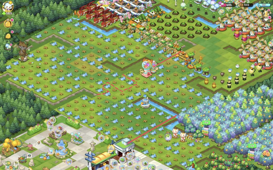 (下图一共125个5级水池,一次产出8块土壤,可以通过卡时间实现5分钟一收)