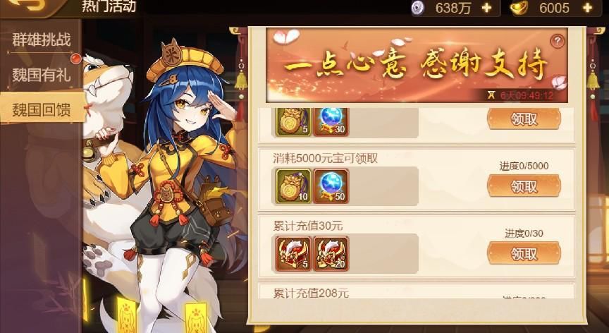 活动简介:本活动为消耗活动,活动期间,达成一定的元宝消耗数量或付费累计额度,即可领取奖励。