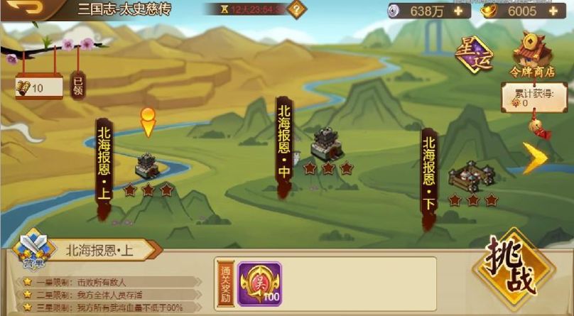 ★三国志困难难度累计星数30:太史慈碎片*5+姻缘签*10