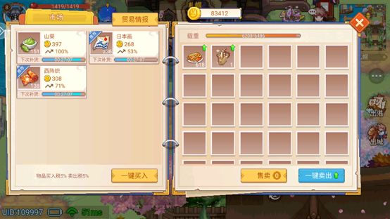 ii. 整体来说就是,一些指数很高的稀有货物(或者是特产),在一些特定的城市可以卖出极高的价格,而如何快速掌握这些物品价格趋势,并且不用进入城市就可以查询,就需要玩家通过情报功能来支撑,至于具体的物品、城市、售价,需要玩家在游戏中多多探索学习了,推荐各位萌新善用情报功能,非常省时省事哦(*^▽^*)