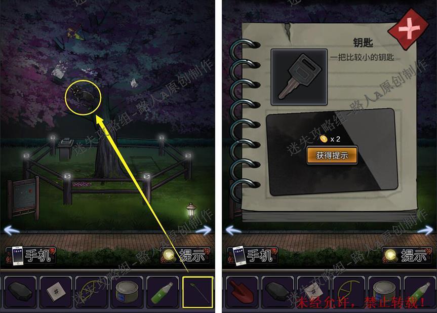 41. 和文鹏海对话,然后将【树枝】插入树干的洞孔,打开地下室。41.1