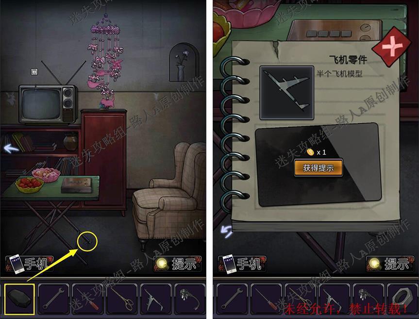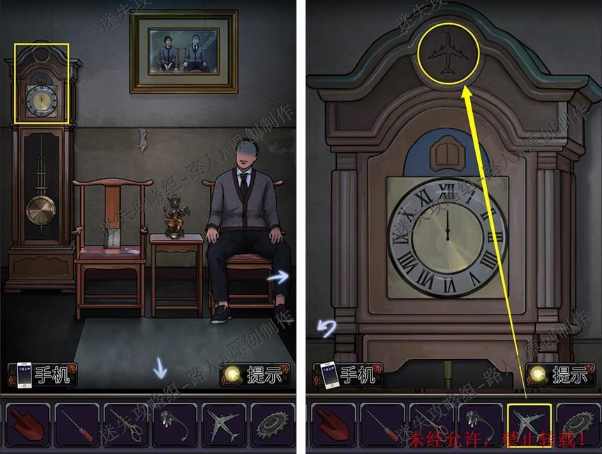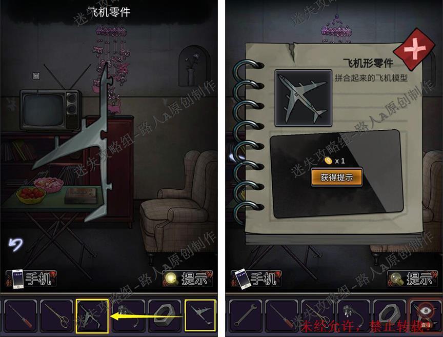 28. 将【飞机模型】放入凹槽,打开钟表盘,拾取【圆形零件】。28.1