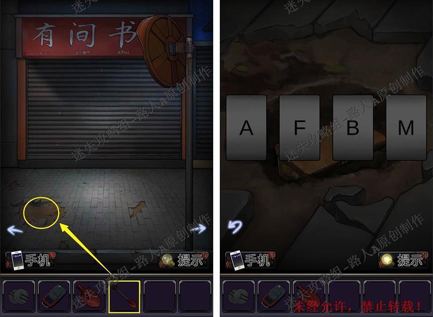 10. 用【铲子】挖出盒子,输入密码【AFBM】,得到【钥匙】。10.1
