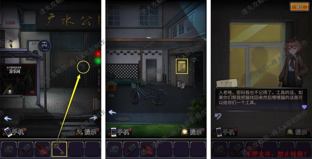 11. 用【钥匙】打开公园大门,进入公园,和窗户的人影对话。11.1