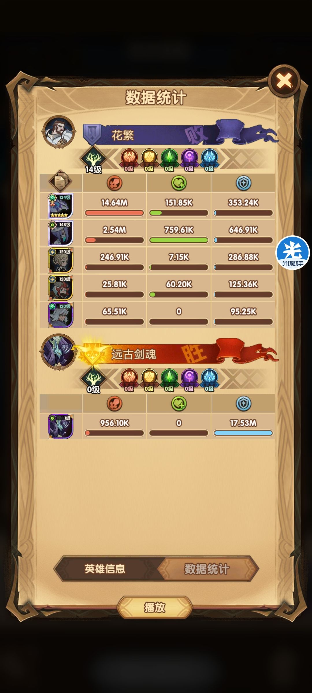 这个阵容我从12章到16章基本上就没怎么变化,偶尔换下工具人。12章到14章20以前基本都是2.5-3倍战力过图。最怕遇到有女骑或绿裔多的阵容。