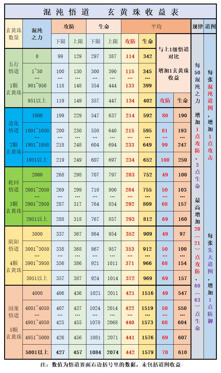 实际每次悟道属性【括号前面的数据】,攻击要额外加上混沌道图的数量,防御要额外加上先天道图的数量