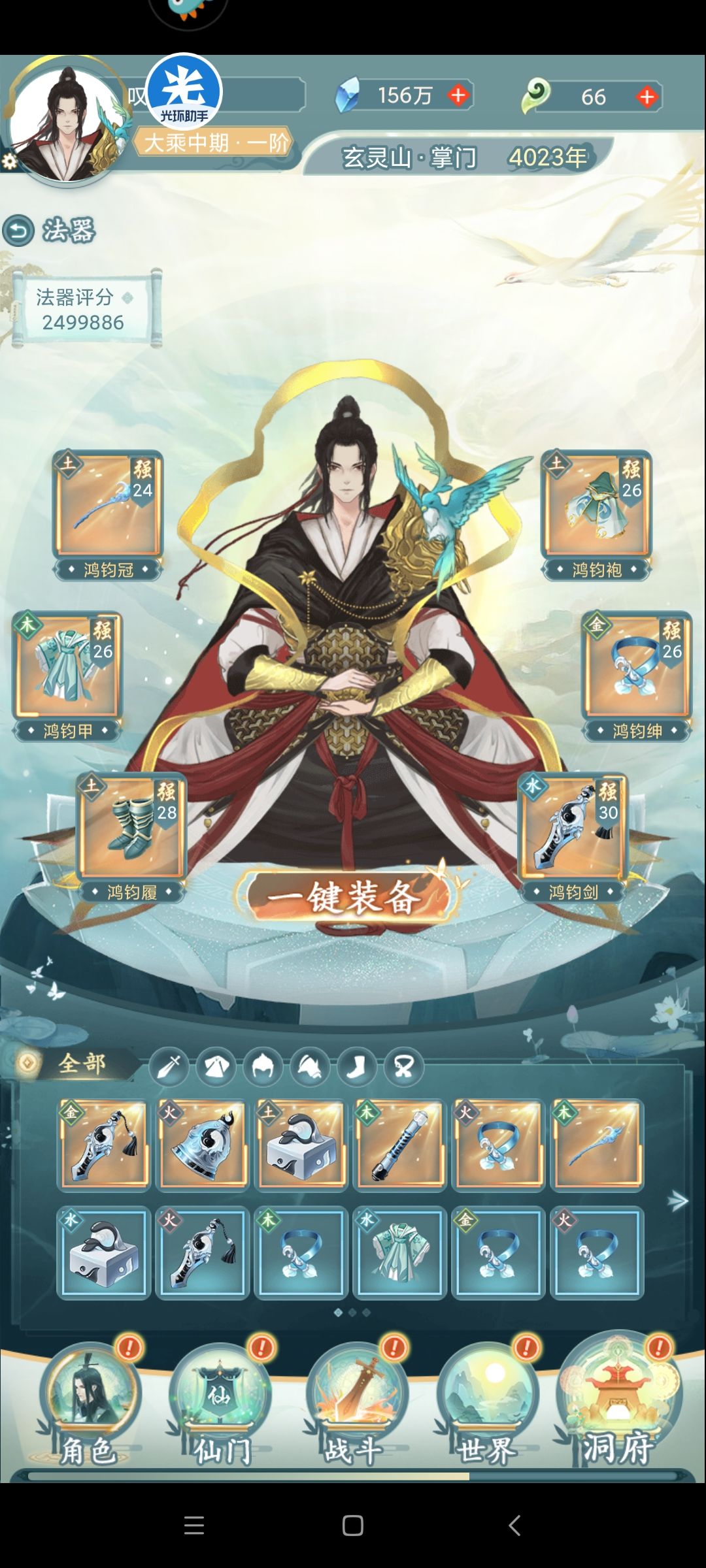 二、法器,法器分为橙紫蓝绿白。其中橙色增加的属性最高,并且每种法器不仅提高的基础属性, 还能随机增加,命中闪避,暴击吸血等特殊属性。并且法器还能升级,每次升级法器的基础属性就会提高。