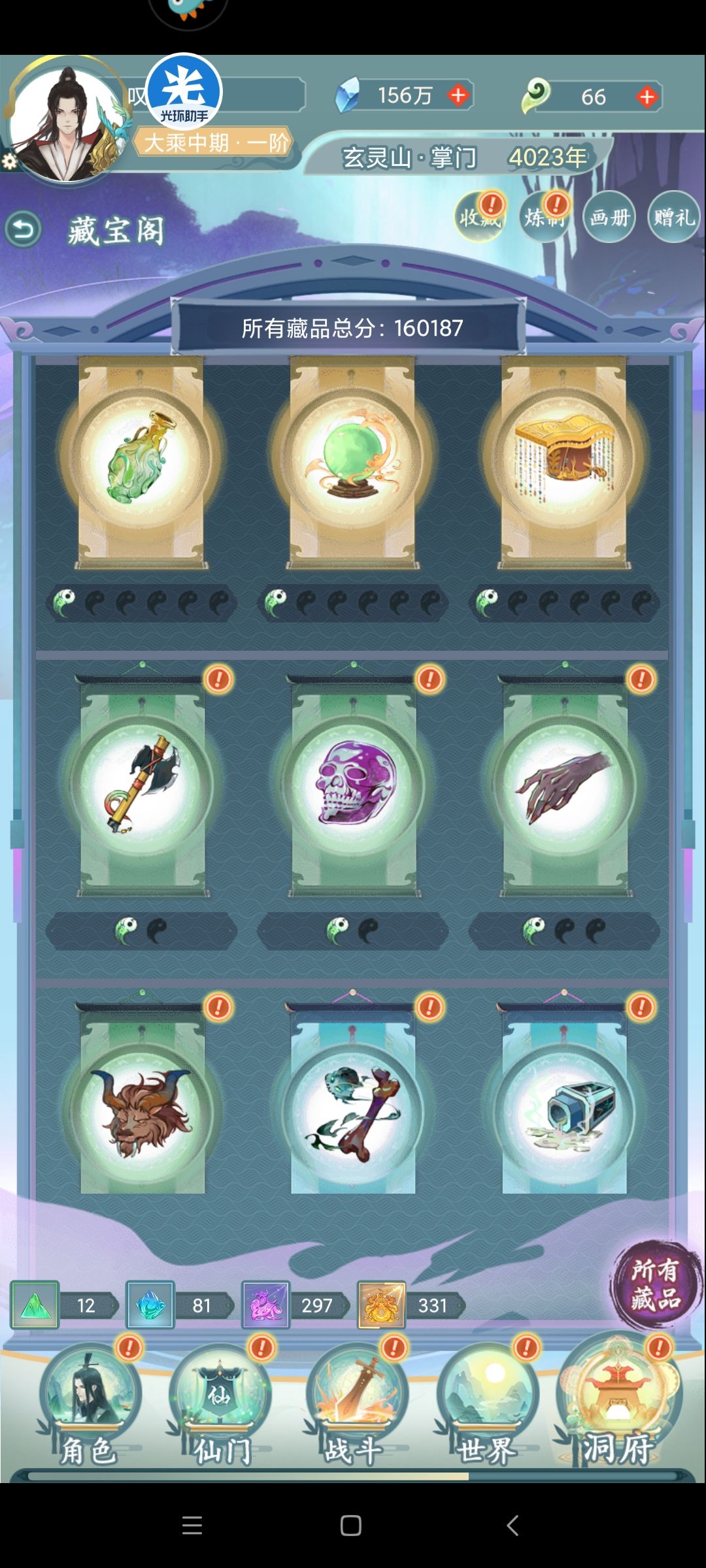 藏品:可以为玩家提供法术攻击、血量,防御,命中、闪避、灵根、各系抗性和各系加成等属性。紫色和橙色藏品升级完还可以觉醒为玩家提供种族抗性和攻击(目前种族区分还不太明显,等待后续更新)。