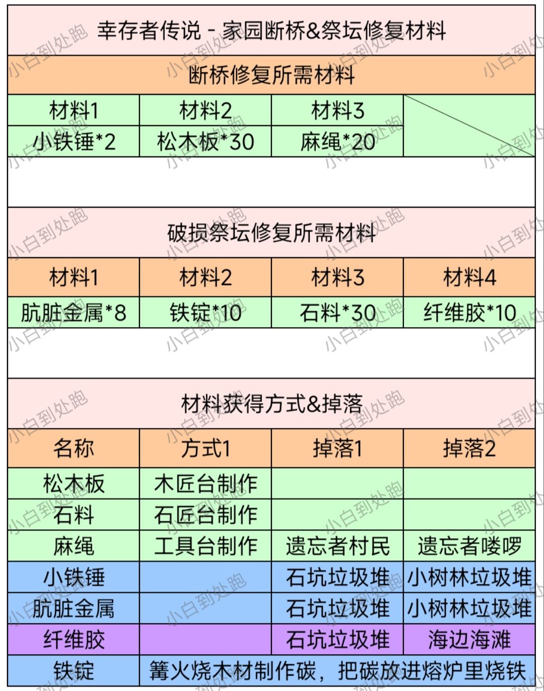 【修复断桥&祭坛所需材料统计表】