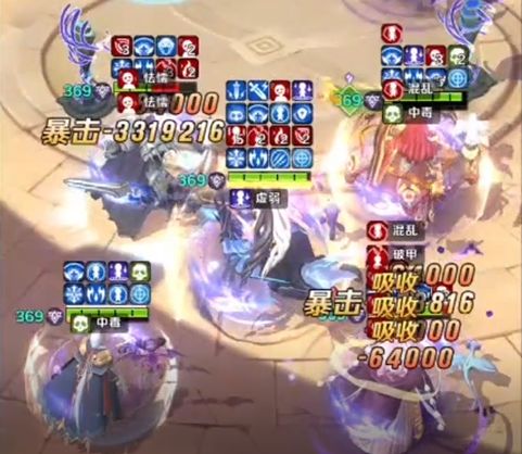 战斗素材要点:我方魔姬先手,十星潜能20带了大师级连击,敌方魔姬没有带连击。所以理论上我的魔姬打8下天耀伤害70000*80%=56000,敌方打6下。逐帧数数后发现并非如此: