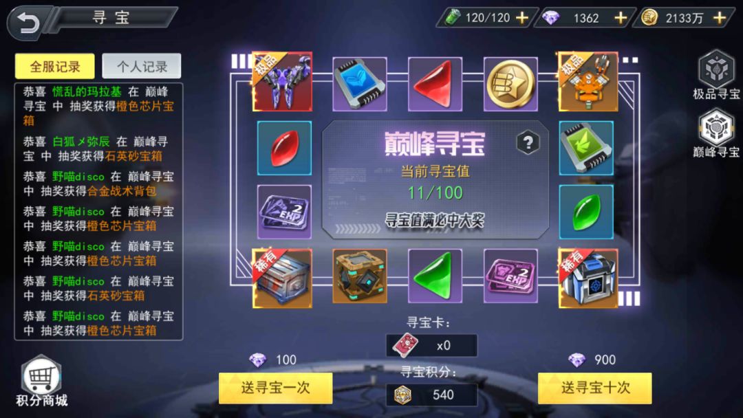 我们也在直接详细解读过寻宝的规则和玩法,也详细的解读了积分问题的兑换和说明,今天着重分享一下寻宝的第二个阶段--巅峰寻宝。