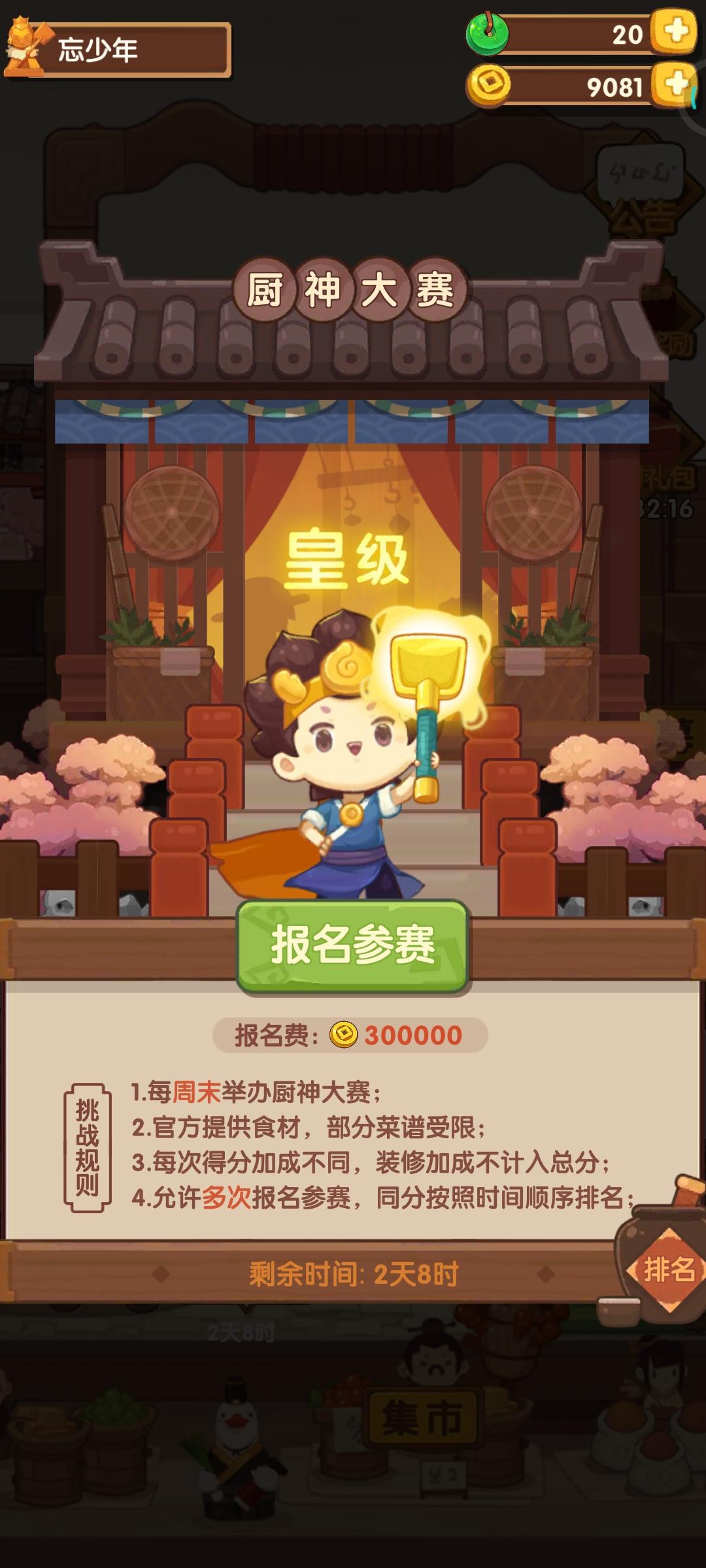 每次看到这活动就烦,经常连个最低级的奖励都拿不到。就我这号,给我上皇级比赛?真看得起我!以前10万金币还敢试试,现在30万金币!真的服了,这到底是怎么排比赛级别的?我就三个五火,一个五火还是氪金买的,还有两个五火觉醒都是买材料觉醒的。菜谱也就两个五火。总共氪了300左右,想想真不值得,低保都拿不到。昨天6块钱2采集的靴子都没买了,心塞。