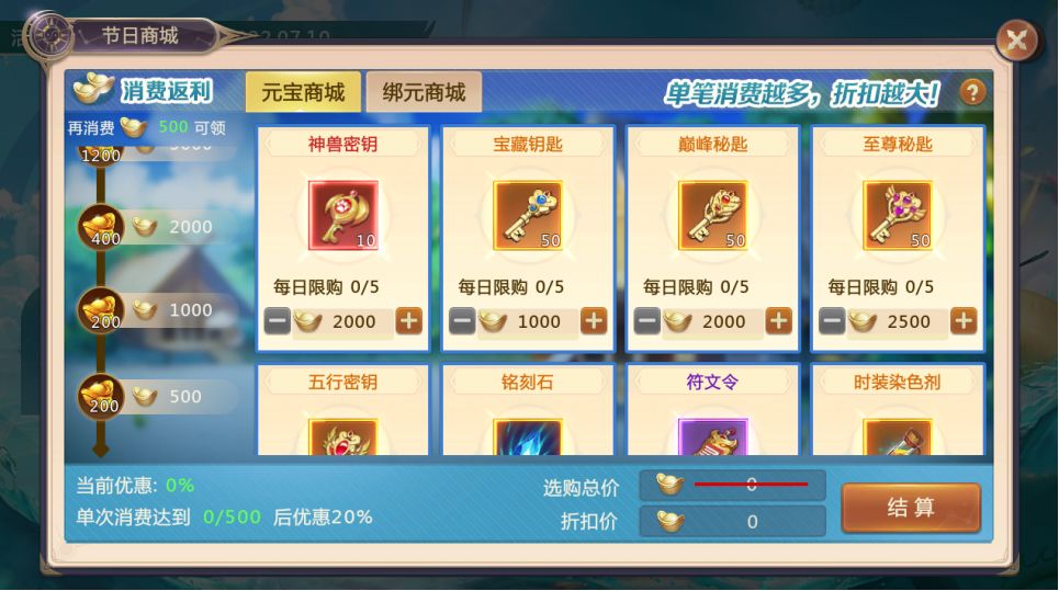 累计消费元宝达到固定金额后还可领取丰厚的绑元奖励。