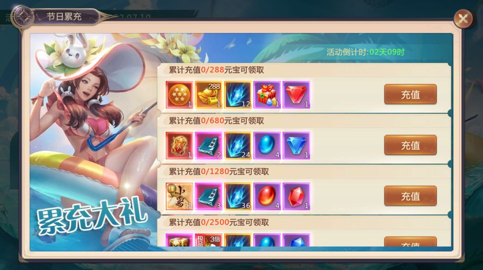 活动期间内充值到累计额度可获得对应的豪华奖励。
