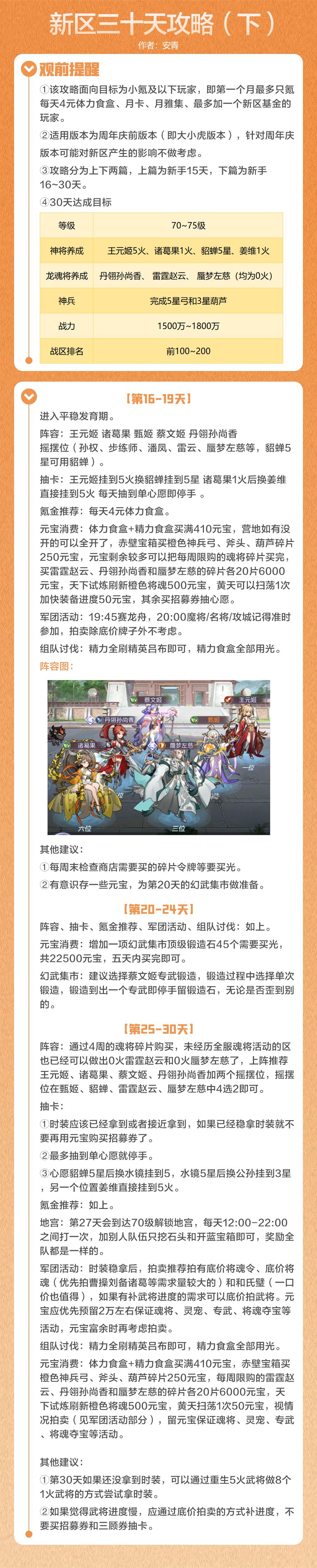 为大家带来新区30天攻略,为了方便小将军们查阅,将其进行美化整理产出长图如下~