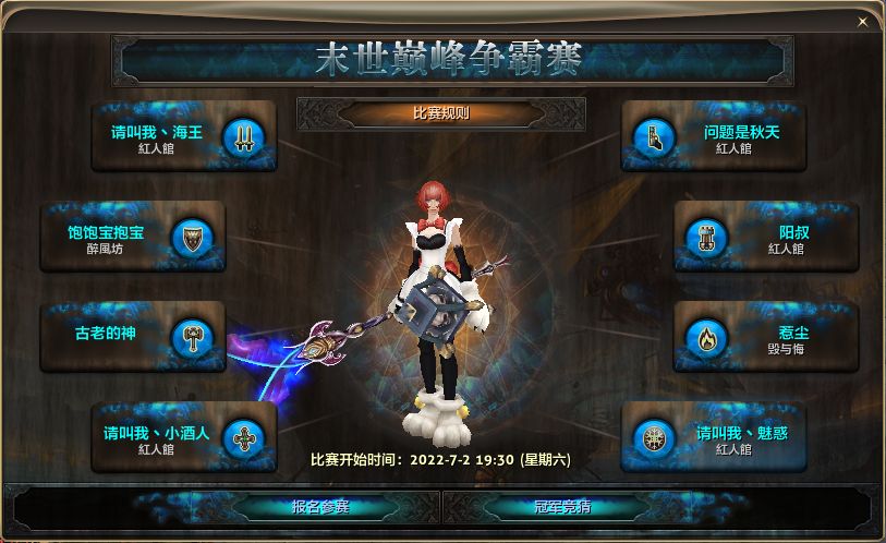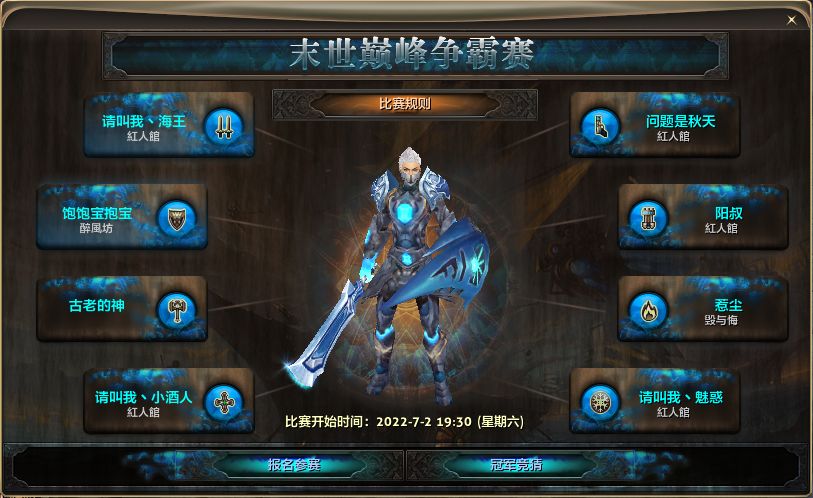 第二期末世巅峰争霸赛将在7月16日19:30分开始,各位玩家们可以在7月11日至7月16日19:30前报名参与第二期末世巅峰争霸赛,将冠军大奖和竞猜奖池统统带走吧。