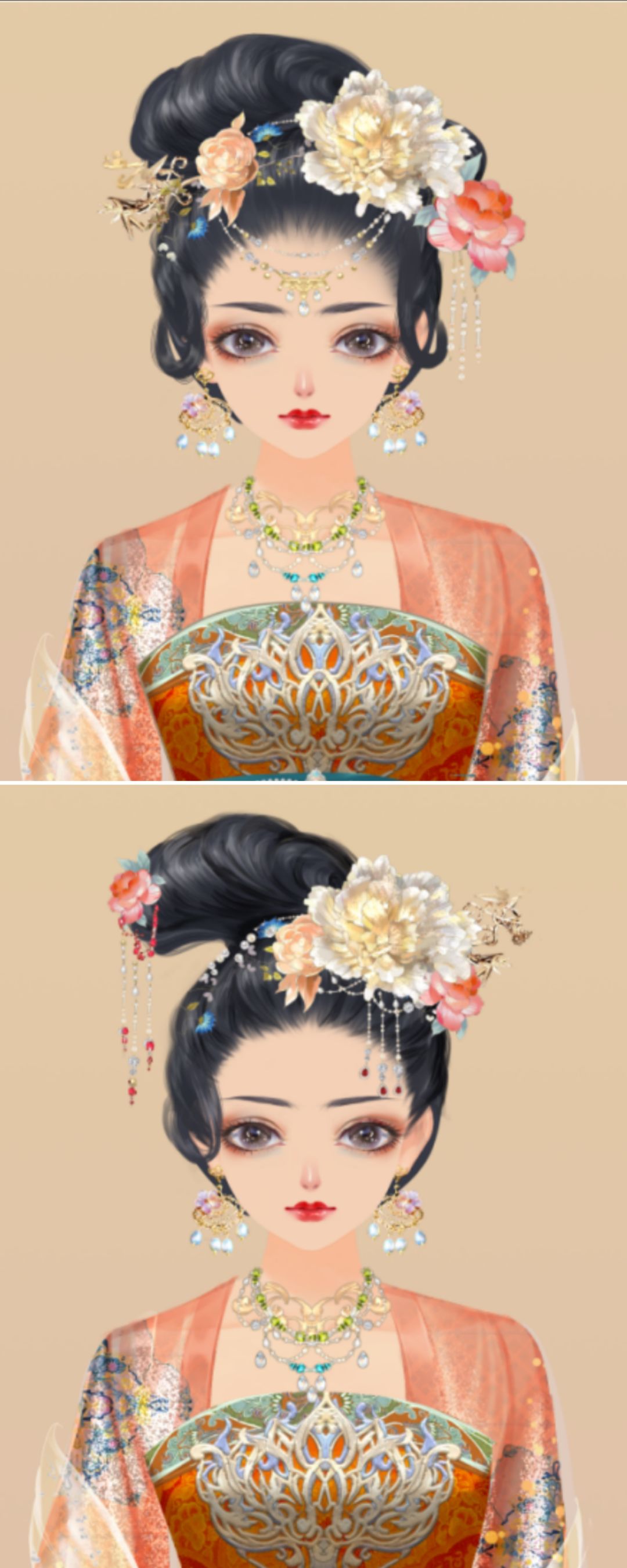 上次的新服装,收到大家的建议画手太太又做了一些修改,目前还是有点卡发型发饰妆容这些。