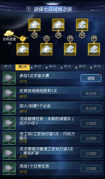 宇宙大赛开启条件为声望7级,入口在底部功能区-滑动至第2页。