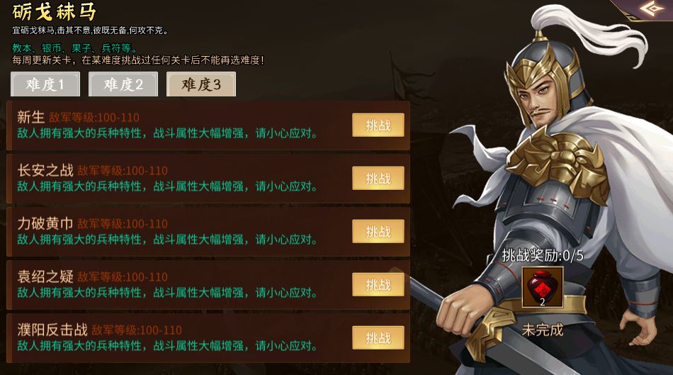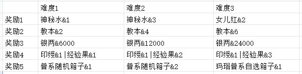 3.周常调整,3个难度自选,每周刷新5关,不同难度奖励不同。