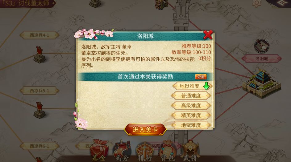洛阳城可自由选择关卡难度
