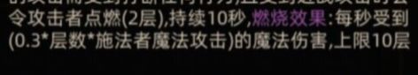 燃烧效果=每秒*0.3*层数*施法者巫术攻击值,可作用于建筑