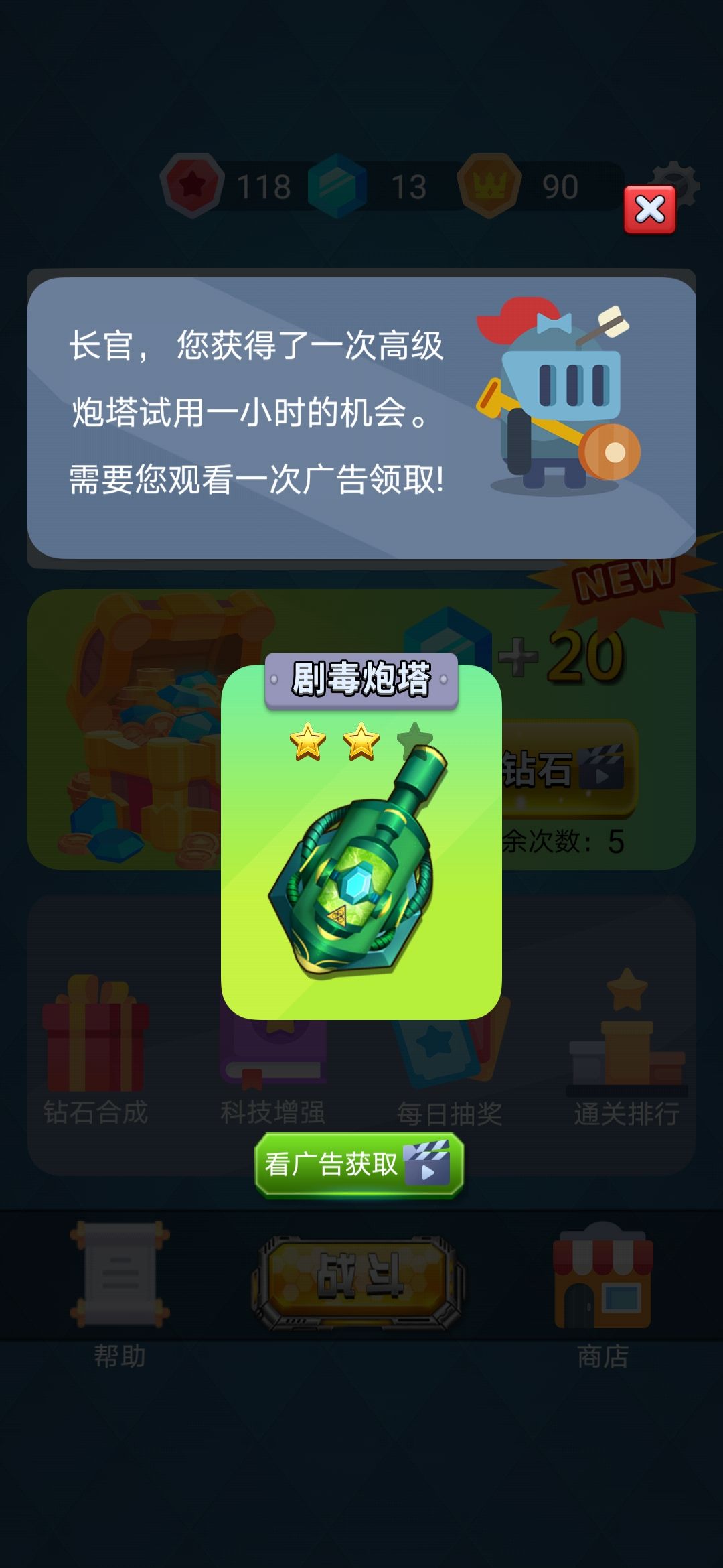 3:增加高级炮塔试用功能