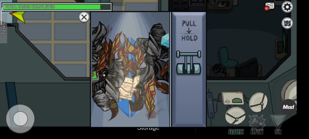 在最大的房间里有举报按钮,当船员发现可疑情况,可以立刻投票,投出破坏者可将该玩家踢出飞船。