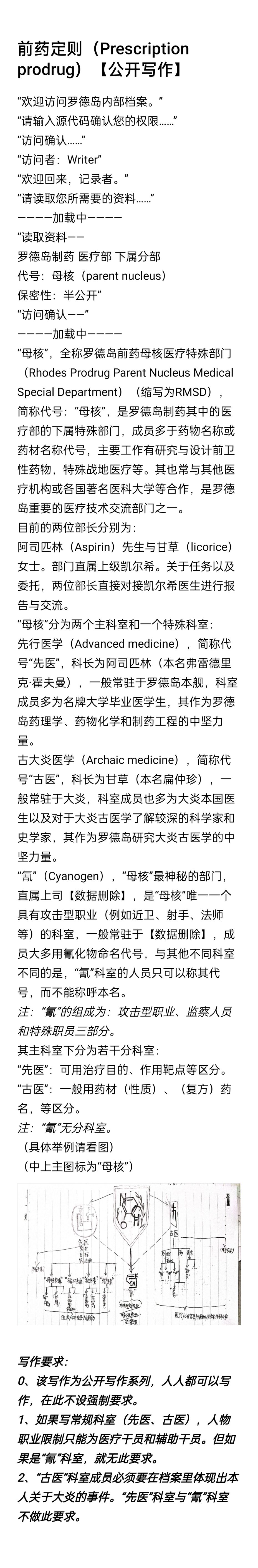 注:“先医”科室干员都以药物命名,“古医”科室干员都以药物或药材命名,“氰”科室都以氰 化 物命名。