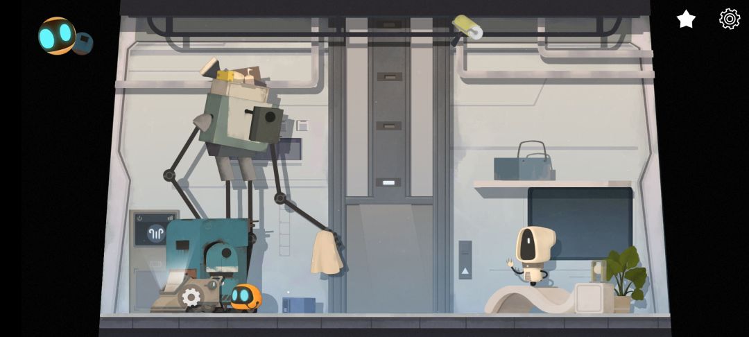 第五关,控制艾彼把那个小车车推到左边,像图中的位置和方向(艾彼站在哪一边按交互按钮车就会像哪一边动);然后换成迪迪,可以改变空调风的方向向上