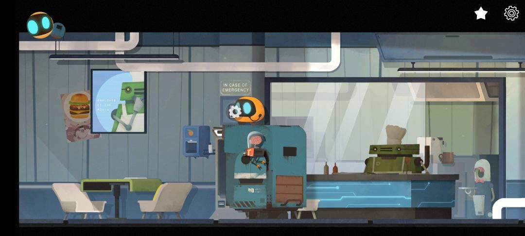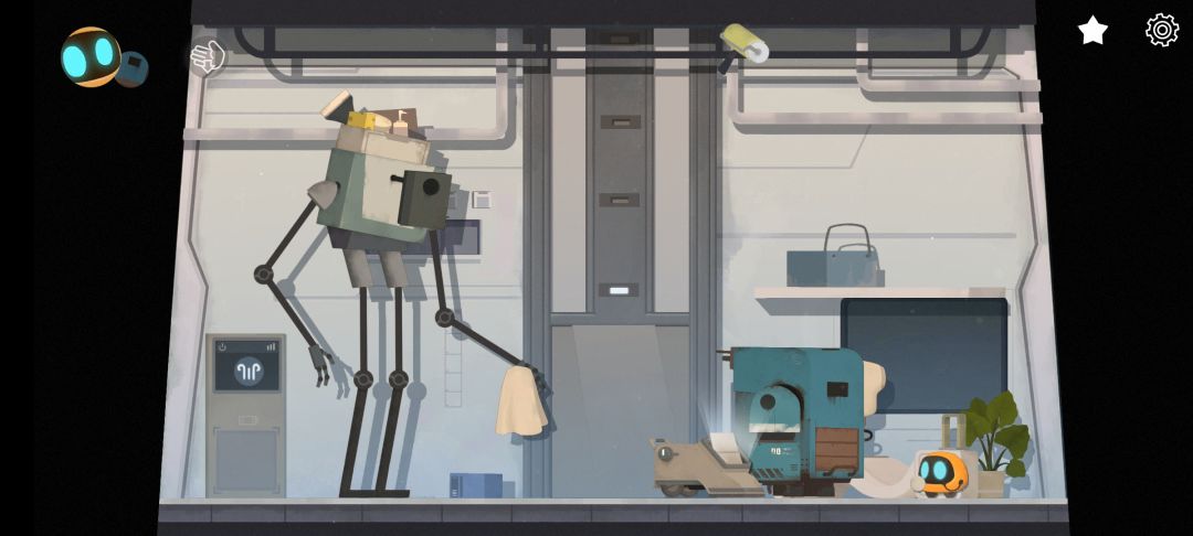 然后艾彼将车车推到台子斜下方,像下图一样。绿萝旁的桌子上有个东西,艾彼拿起来,依靠迪迪爬到最好点把卡着的拖把打下来,然后把得到的拖把给左边的清洁工,就可以进电梯了
