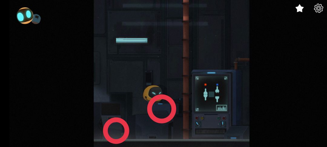 第三关,关掉电源,像图一一样关掉这个位置电源,脚下踩得箱子是从左下角画圈那里拿的( ps截图时已经关了这边电源了_(:3 ⌒)_)