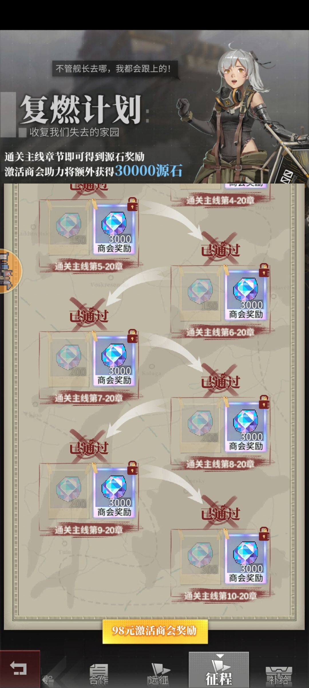 开局游戏招募常规必出嫦娥,按照上面推图然后开矿区后打到20层花1000钻把嫦娥碎片买下来这样再加上嫦娥之愿活动,第一天就能升红白嫦娥了,关卡是肯定没问题的。第二天签到送嫦娥碎片就能升白嫦娥,基本上关卡就不会卡了。(如果你抽了嫦娥up池子,那就更快啦)